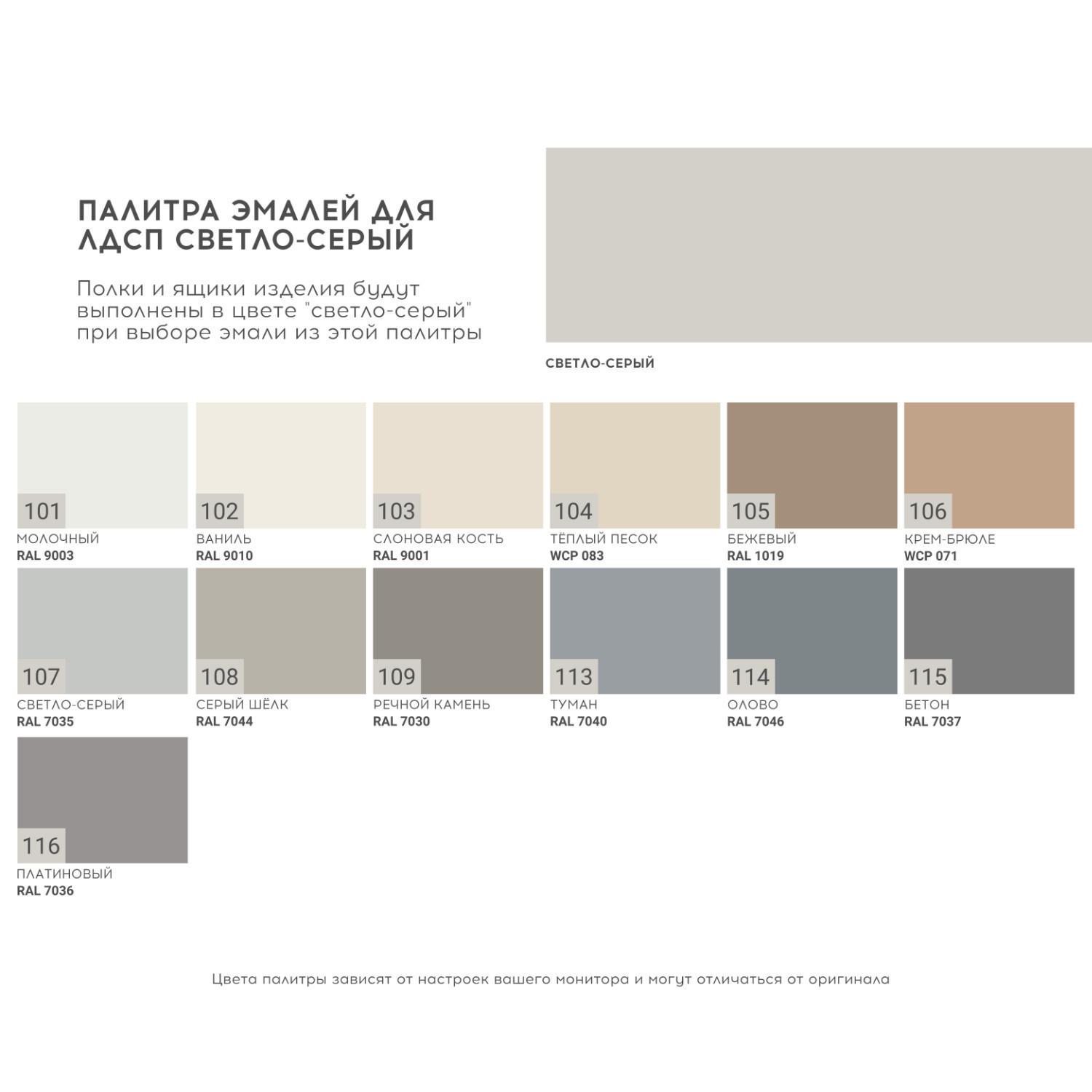 - Ящики изготовлены из ЛДСП (два цвета, зависит от выбора цвета эмали);