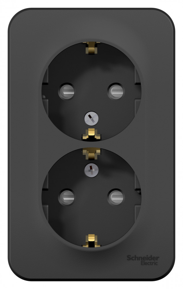 Розетка Schneider Electric BLANCA (антрацит, открытой установки) двухместная, с заземлением и шторками предназначена для сетей до 250В, на ток до 16А. Двухместная розетка позволяет подключить два устройства в одном месте. Шторки и заземление обеспечивают дополнительную безопасность при косвенном прикосновении.
